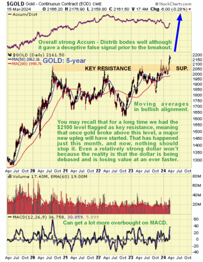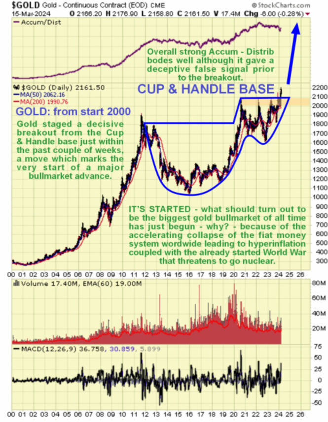 After almost four years of going nowhere, gold has this month broken out into what looks set to be by far its biggest bull market to date, and it would be surprising if it wasn't given the fundamental outlook which is for currency and societal collapse, implosion of the debt and derivatives markets and war and general chaos and mayhem as the prelude to an intended global government involving the imposition of the CBDC (Central Bank Digital Currency) system as part of a total control grid.
