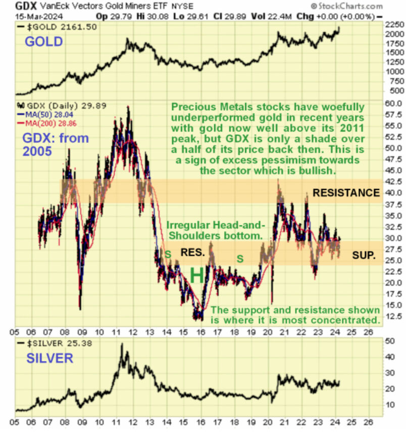 Gold is higher now than its 2011 peak, yet GDX, representing PM stocks, is about half the price it was in 2011, so it is clear that PM stocks have a lot of catching up to do and as gold continues to ascend, they will attract growing speculative interest, eventually displaying the positive leverage to the gold price that they are famed for.