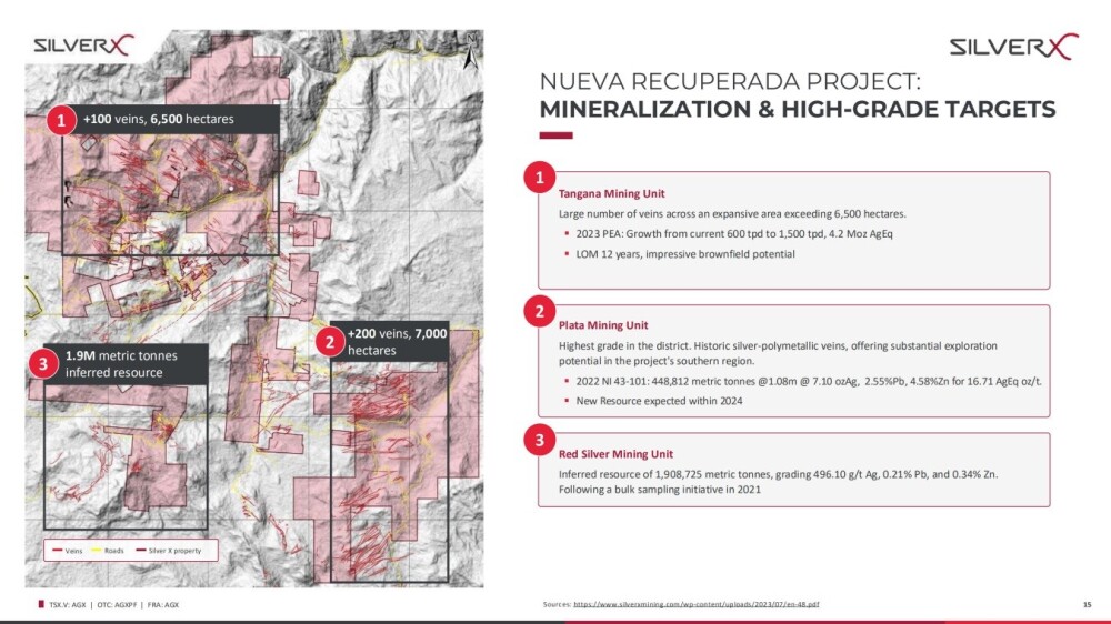 Within the news announcement, Silver X CEO Jose M. Garcia commented, "Our Nueva Recuperada Property continues to position itself as one of the most relevant silver projects in South America. We are developing an outstanding asset, a district-scale property that will see mining activities for several decades," and "The Plata Mining Unit stands out as a high-grade project where we have managed to identify 6.35 MT of resources on 19 veins out of the 171 veins that are mapped in the area. As a producing company, we envision an opportunity to combine fast-track production with a growing resource in a good silver market. Nueva Recuperada will accomplish fast organic growth over the next few years."
