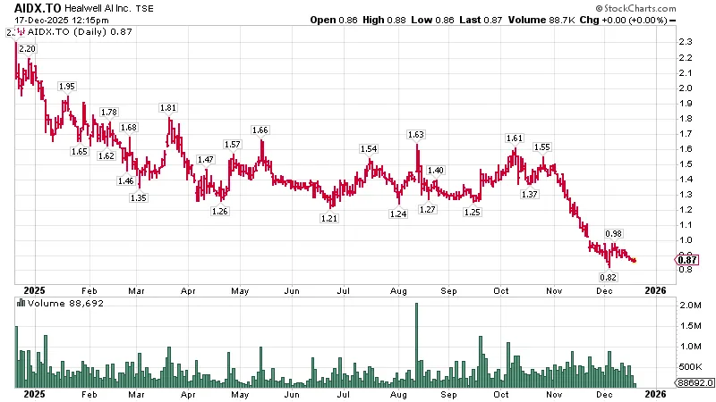 Three years ago, this was a CA$3 stock. Now it's 85c. But it's now a top pick of Canadian broker, Haywood Securities, which has put a target of $4.50, now that it has cleaned up its balance sheet and refocused its activities on AI.