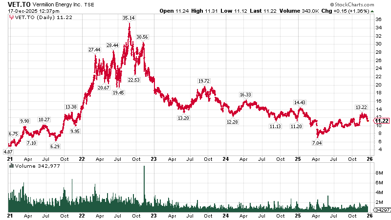 5. Vermilion Energy Corp. (VET:TSX; VET:NYSE) is not a bad option.