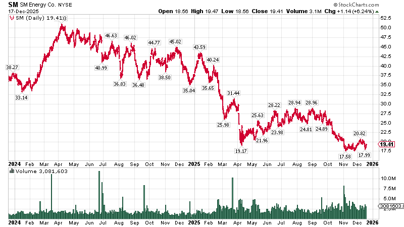 This $2 billion market company is perhaps a bit larger than ideal, but its chart — going from $50 to $17 — fits the bill.
