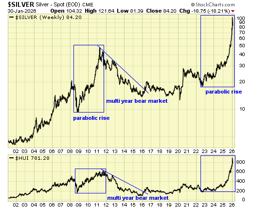 Parabolic rises are unsustainable and often occur at the late stage of a bull market.