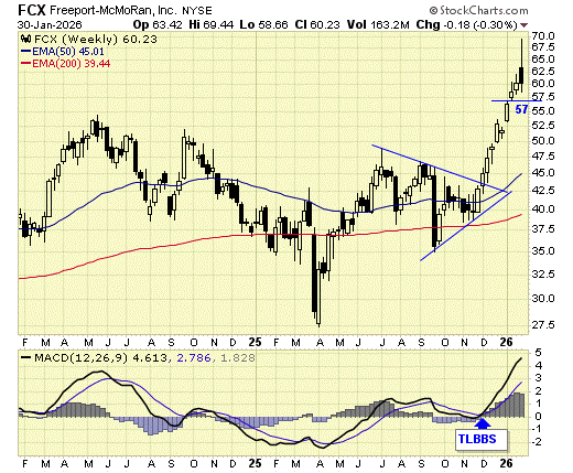 Freeport-McMoRan Inc. (FCX:NYSE) – exit on a weekly close below $57.