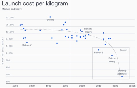 Elon Musk's SpaceX has slashed the cost of breaching Earth's gravity well by a staggering 90% since the turn of the millennium: