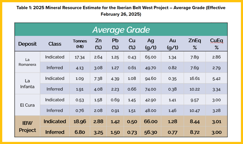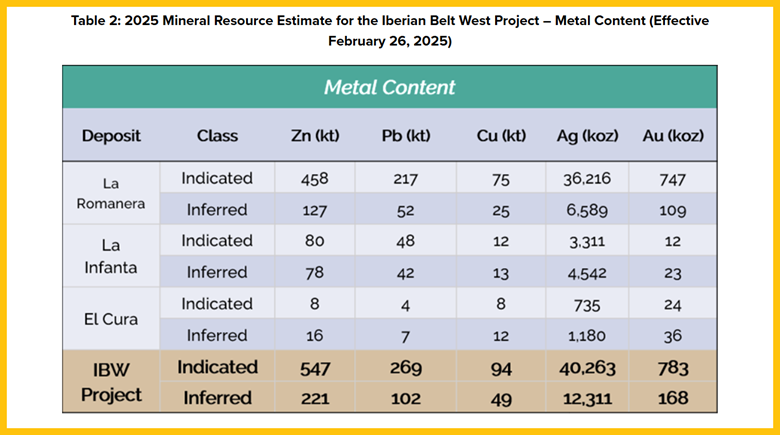 The company's flagship IBW project encompasses three polymetallic deposits: La Infanta, El Cura, and La Romanera.