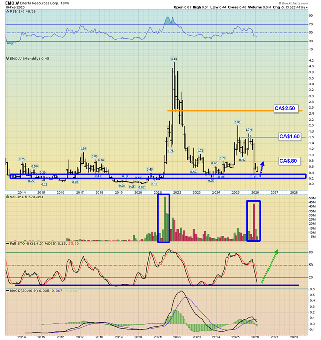 - Emerita Resources Corp. is a billboard sponsor of Streetwise Reports and pays SWR a monthly sponsorship fee between US$3,000 and US$6,000.