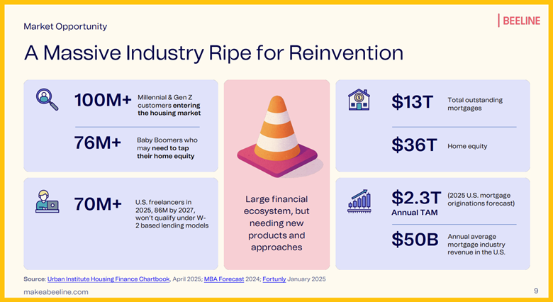Beeline Loans: This key entity provides a fast and fully digital B2C mortgage experience with rapid approval. It's built to serve the gargantuan market of non-traditional, "Gig" economy borrowers and investors.