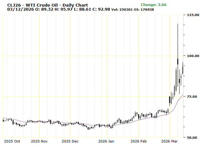 Oil took another jump higher today despite all the rhetoric about releasing record amounts of oil reserves. The IEA is preparing its largest-ever emergency crude oil release to counter surging Brent and WTI prices. The talk is of 400 million barrels. There is between 20 and 25 million per day shut off due to the Iran war, so 400 would make up 16 to 20 days of supply cut off. The war has already been 10 days and counting.