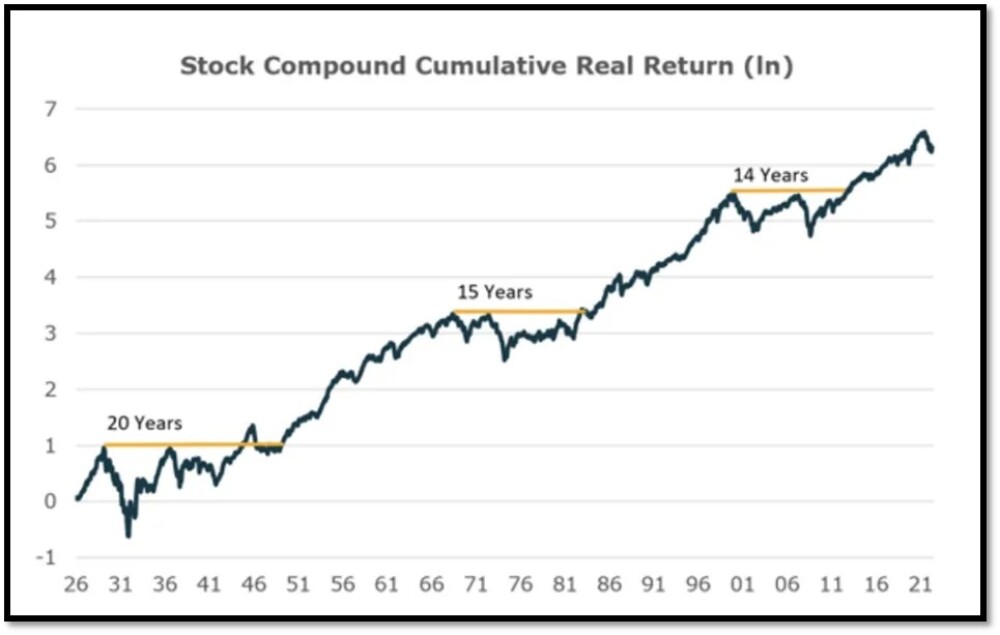 It's a powerful illustration of how long periods of equity market stagnation are often followed by years of strong performance.