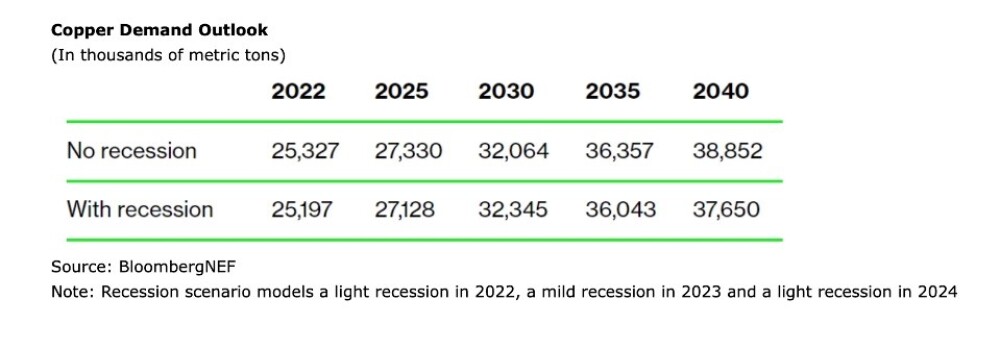 Other forecasters, and that includes us at AOTH, believe a recession will only delay demand, which is inevitable due to the trillions of dollars being planned for electrification and infrastructure investments. An August 31 presentation from BloombergNEF states that a recession will not “significantly dent” consumption projections going into 2040.