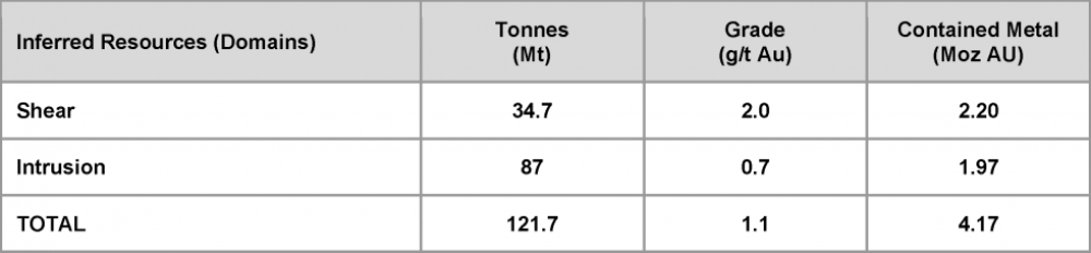 - 2.11 g/t Au over 30.75m from 536.9m, including 11.5 g/t Au over 3.1m from 555.2m