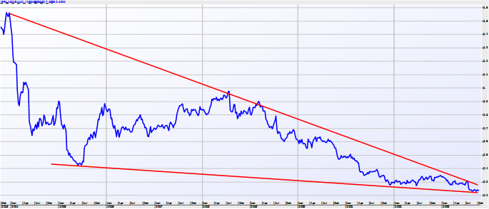 Note this pennant formation for gold in Euros is suggesting a very strong move in gold in this currency.