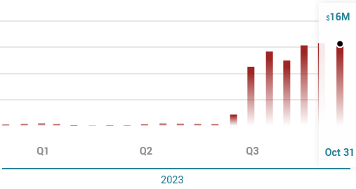 I previously commented on the huge short position on the U.S. side, and it is up to new highs of almost 43 million shares with the October 31 short report and 4.6 million on the Canadian side. Marketbeat's short report estimates 162 days to cover, and so does the short squeeze, but this is based on low volume on the OTC as the stock mostly trades in Canada at around 4 million shares per day.
