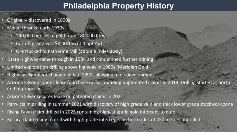 For more details on the geology of the Philadelphia Property, go to the company's latest investor deck.