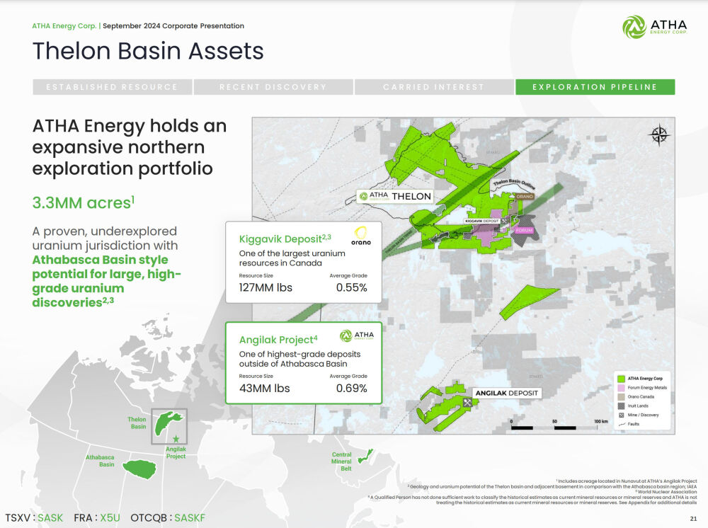 The big reason that Atha Energy is the standout "go to" investment in the sector is that it has acquired by far the largest land package in the prolific Athabasca Basin in Canada, having acquired an astounding 4.8 million acres and it also has the biggest land package in the nearby Thelon Basin, and these areas host every type of uranium.