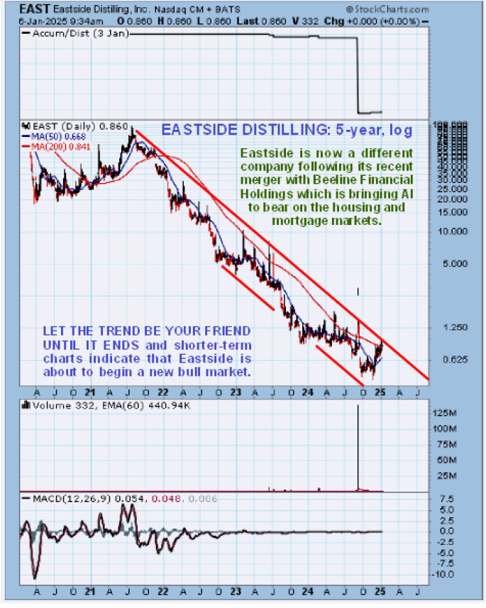 Ordinarily, we would not be interested in a stock like this, but Eastside Distilling Inc. (EAST:NASDAQ) is not what its current name implies. Whilst it is still in the distilling business, it has recently broadened its horizons greatly by merging with Beeline Loans, a pioneering mortgage technology company that operates an end-to-end, all-digital, AI-enhanced platform for homeowners and property investors.