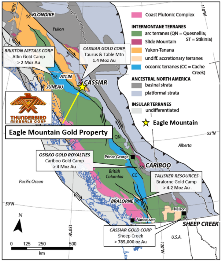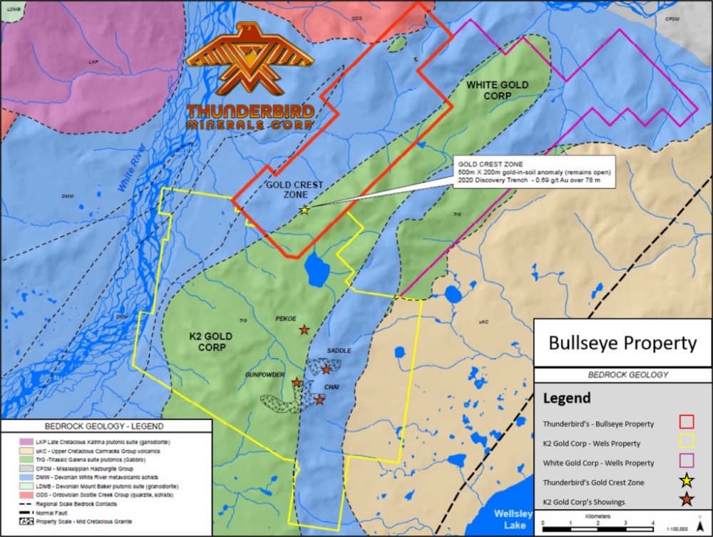 The company's exploration strategy centers on systematic fieldwork and low-cost discovery models in highly prospective mineral belts. Thunderbird's current portfolio includes three 100%-owned, drill-ready projects: the Eagle Mountain Gold Project in British Columbia's Cassiar Gold District, the Bullseye Project in the Wels District of southwestern Yukon, and the Argo Project near Quesnel, British Columbia. All three are located in established mining camps and are interpreted to host favorable structures for gold and copper mineralization.