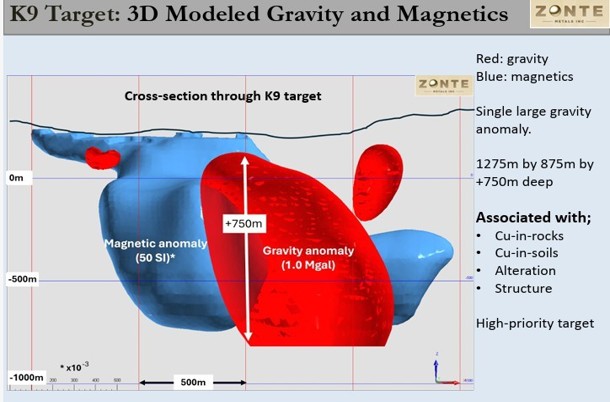 Gravity anomalies are the main tool in finding IOCG deposits and important to highlight for some longer term shareholders, Zonte has just compiled this gravity data at Cross Hills in the past two years when junior explorers were being ignored so the big potential is relatively new data. Zonte has now identified 10 large targets. I think K9 is one of the better ones so will show that anomaly graphic.