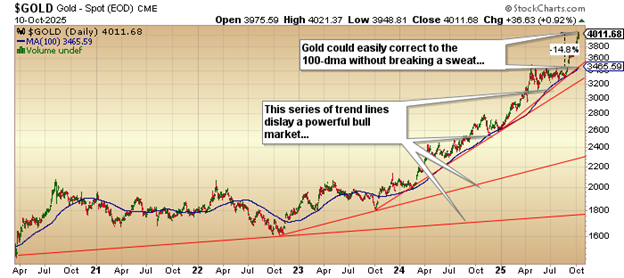 Any way you slice and dice it, the gold and silver markets were ready for a) a "well-earned pause", b) a "healthy correction", or c) a "crash" brought on by the blow-out we just witnessed from August 27 until October 8. Take your pick.