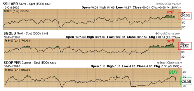 However, the prospect of a global trade war hit the copper market today and accelerated after the close when President Trump torqued up the geopolitical slugfest with the new tariff threats causing it to go out at US$4.84/lb. down 8% from the highs seen earlier this week. RSI for copper went out at a completely neutral 50.34 versus gold at an overbought 76.64 and silver at a seriously overbought 80.56.