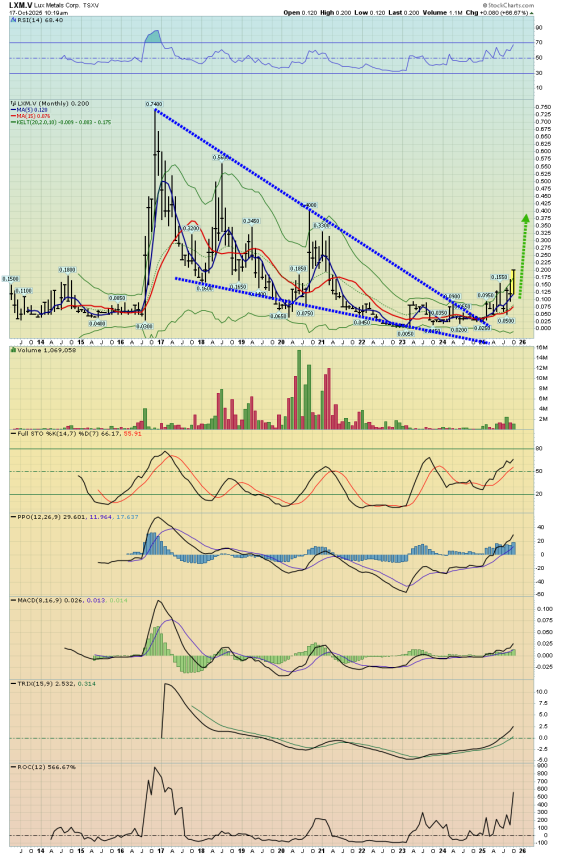 Lux Metals Corp (LXM:TSXV; BBBMF:OTCMKTS) (formerly Huntsman) is pursuing a new project in Saskatchewan and the bull wedge action suggests there may be good news coming.