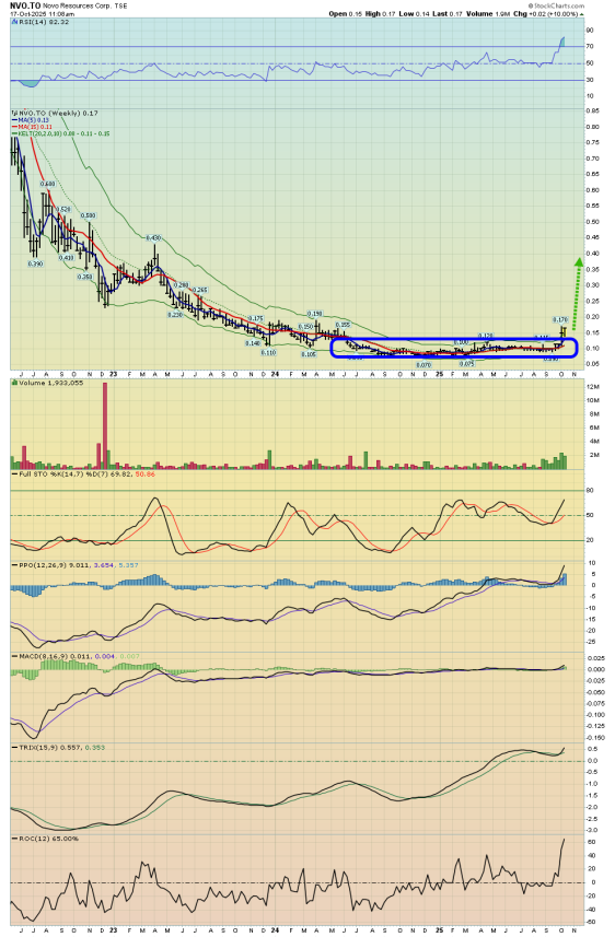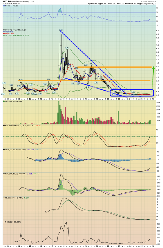 Here's a look at another "sleeper," Novo Resources Corp. (NVO:TSX.V; NSRPF:OTCQX) on the monthly chart: