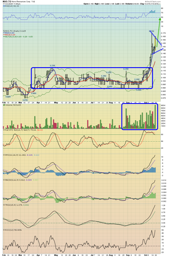At this point, if the CDNX roars above 1100, it looks like Novo could surge to $2, and maybe to $4.