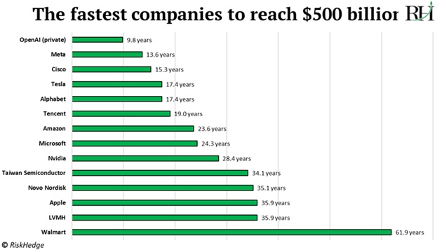 And OpenAI has now become the quickest company ever to reach a $500 billion valuation: