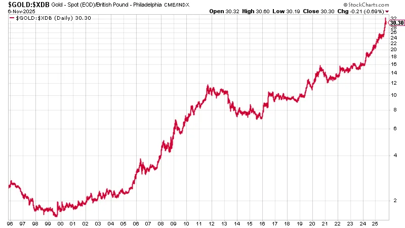 I'm hesitant about buying gold at these levels, but to any long-term investor, it should be clear by now that we all should have some gold exposure when one looks at the gold price in Sterling: