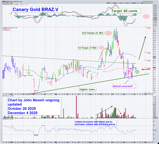 With the shares trading around CA$0.30–CA $0.33, we view Canary Gold Corp. as a Speculative Buy for investors seeking leveraged exposure to an emerging Brazilian gold story with meaningful drill catalysts ahead.