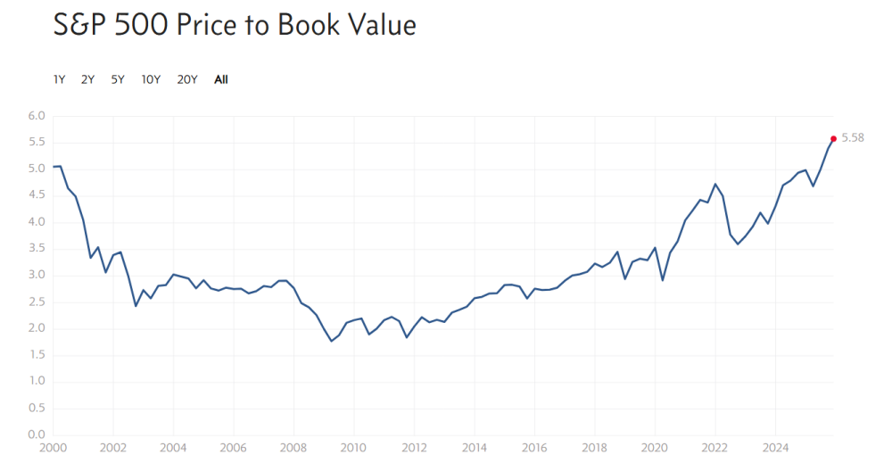 Another chart that shows the extreme overvaluation of the market is the S&P 500 book value.